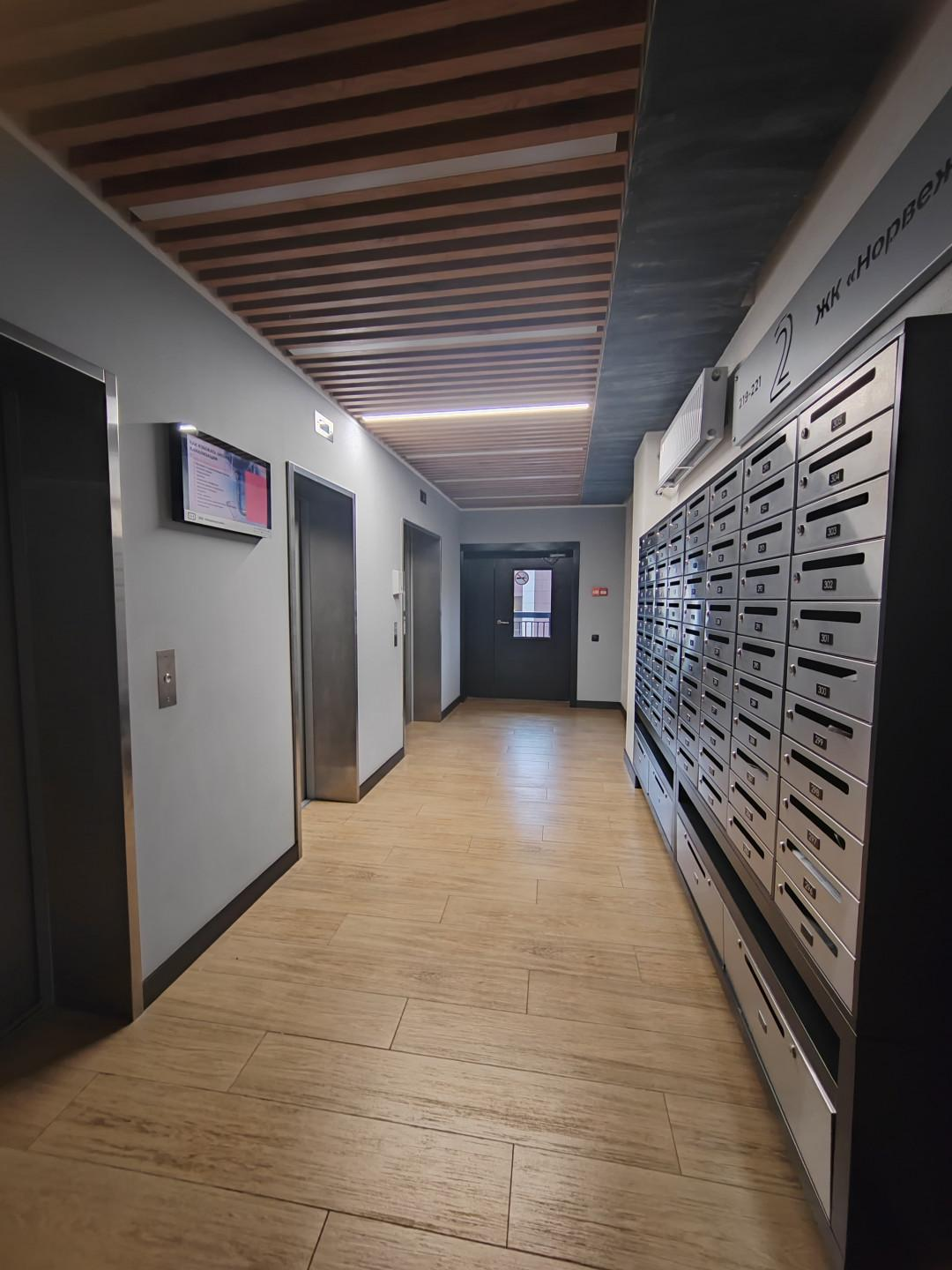 Стильный холл с зонами отдыха, консьержем и видеонаблюдением, обеспечивающими безопасность и комфорт.