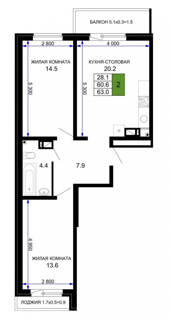 61,4 м²