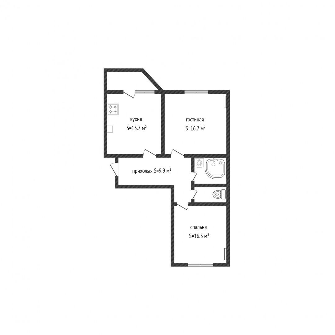 Квартира отличается продуманной планировкой с изолированными комнатами: просторная гостиная 16.7 м², уютная спальня 16.5м² и функциональная кухня 13.7 м². Раздельный санузел полностью облицован качественной плиткой.