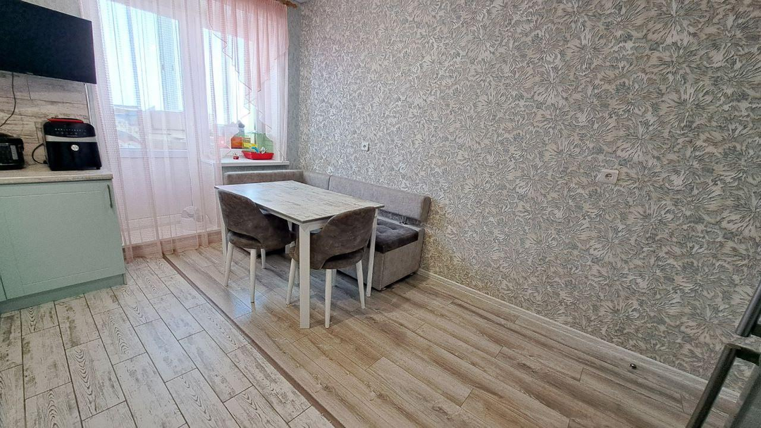 В квартире выполнен свежий ремонт из высококачественных строительных материалов, что создает атмосферу уюта и готовности к немедленному заселению. Кухонный гарнитур оставим новым собственникам.