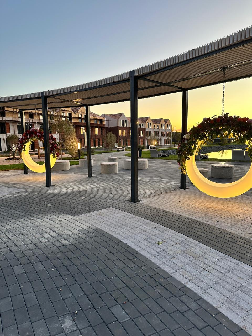 Круглая центральная площадь - место встречи и знакомства с соседями. Здесь круглый год проводят всевозможные культурные мероприятия, отмечают праздники, устраивают ярмарки или тематические гараж-сейлы. Рядом располагаются качели, лабиринт, детские площадки и кафе. Это позволяет каждому найти занятие по душе.