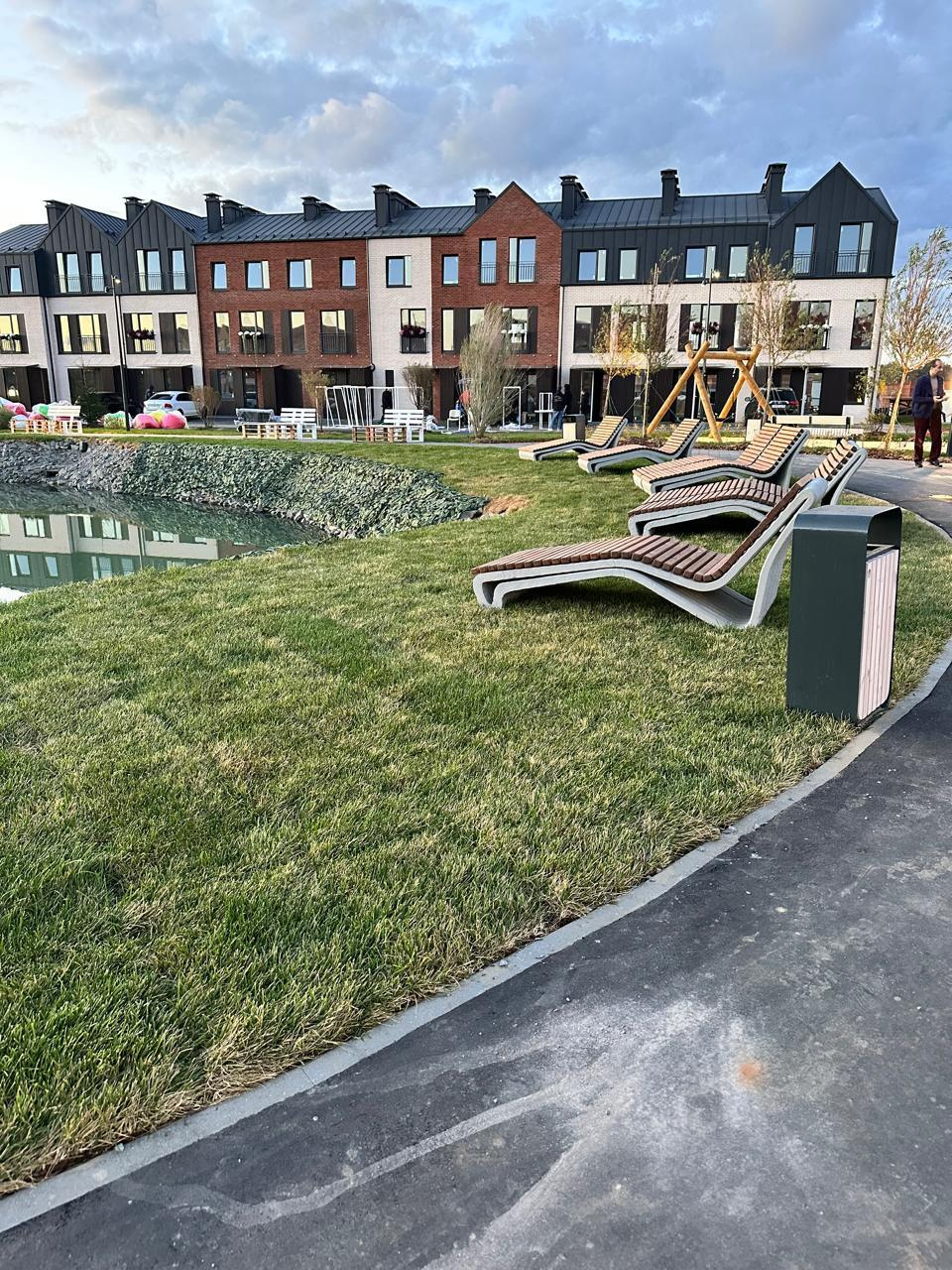 У пруда берет начало главная пешеходная артерия поселка - прогулочный бульвар длиною 1,8 км. Он ведет в лесную зону с ручьем и сам напоминает реку, только сухопутную. 3,3 га парковой зоны наполняют окружающее пространство энергией динамичных зон, которые сменяются зонами спокойствия. У бульвара есть "притоки" - второстепенные пешеходные улочки с площадками для игр и тихого отдыха.