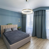 Окна оформлены шторами Blackout: полностью блокируют свет, улучшают шумо‑ и теплоизоляцию, создают ощущение приватности и уюта. Санузел совмещённый, с функциональной организацией хранения и сантехники.