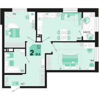2-к. квартира, 61,6 м²
