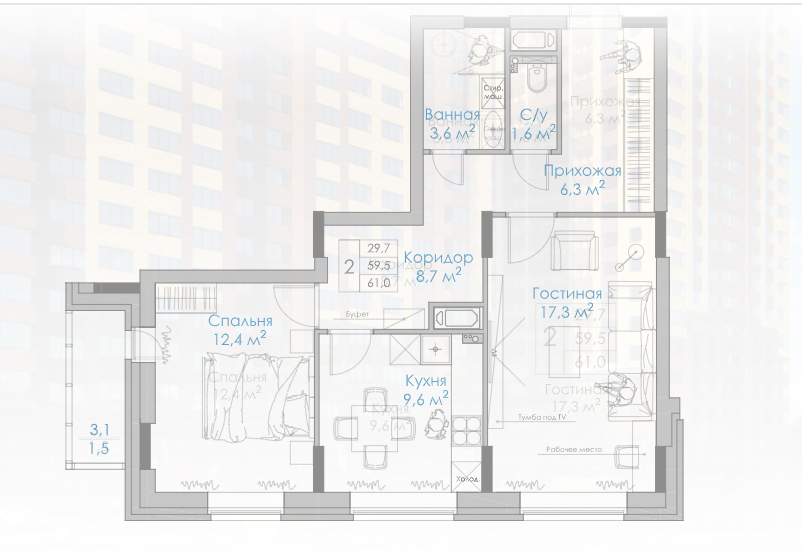 61 м²