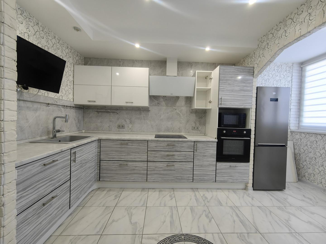 Кухня стильная, с гарнитуром и техникой - 14 кв.м.