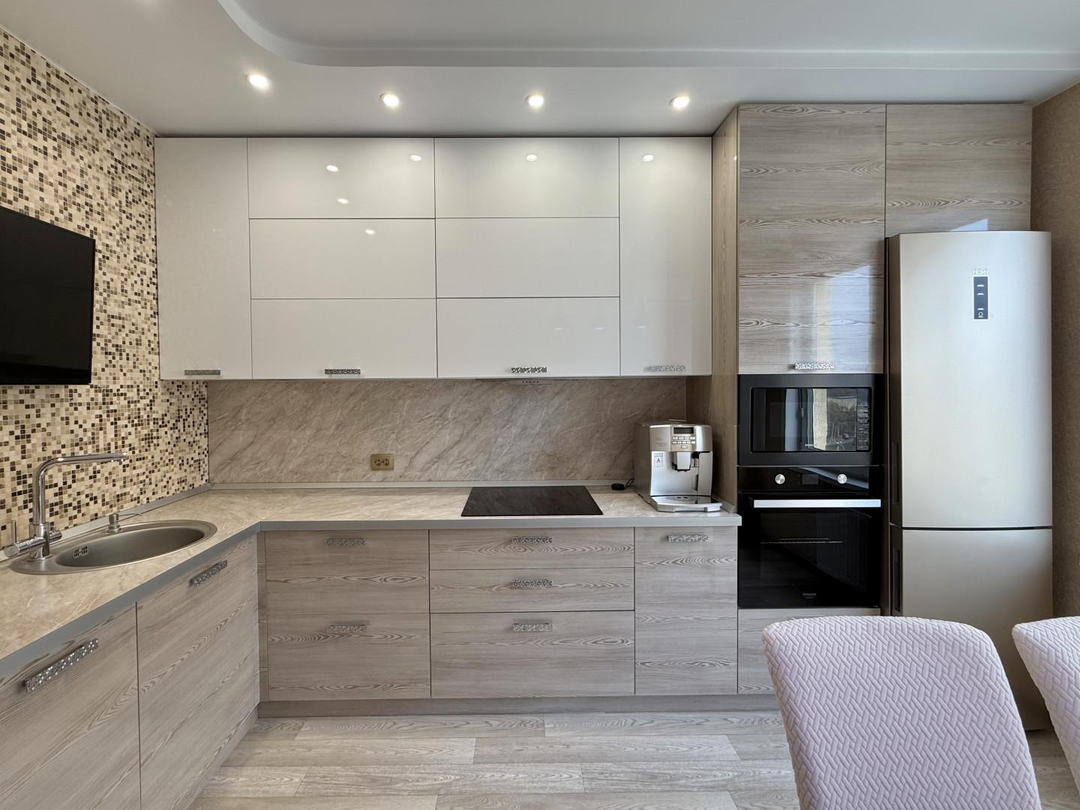 Квартира была выполнена с качественным ремонтом, который включает в себя установку пластиковых окон, навесных потолков, а также выравнивание стен с последующей оклейкой обоями. Санузел оформлен в современном кафеле, а в комнатах на полу уложен ламинат. Дорогие межкомнатные двери добавляют элегантности, а входная металлическая дверь обеспечивает надежную защиту.