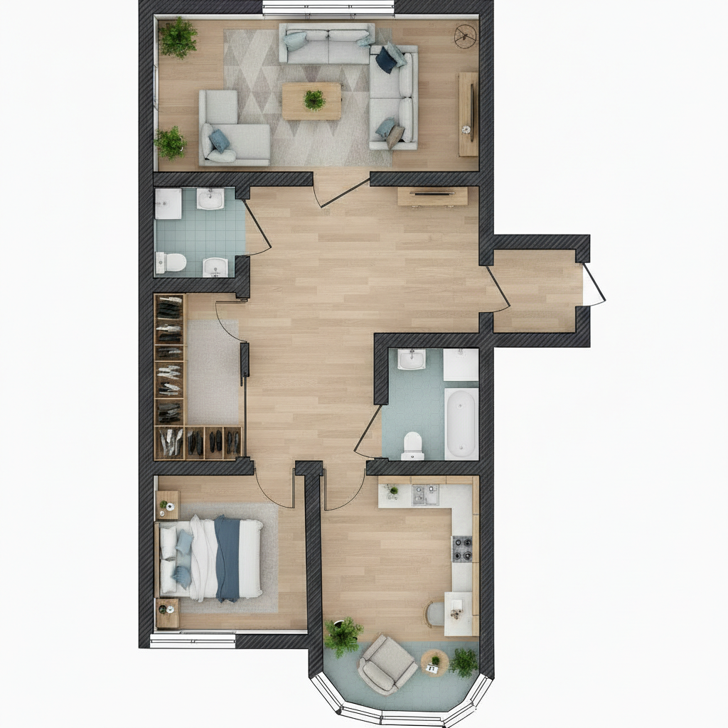 Планировка про удобство: изолированные комнаты на две стороны — зал выходит на Советскую, спальня и кухня во двор. Просторная кухня — готовить и собираться комфортно. Раздельный санузел — без очередей по утрам. Лоджия — прибавка полезной площади. В квартире остается мебель и техника.