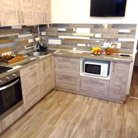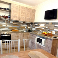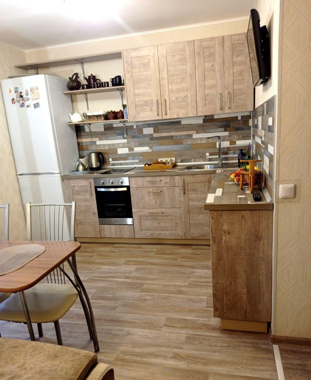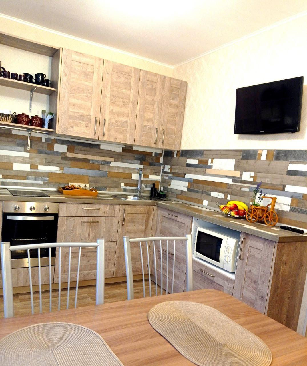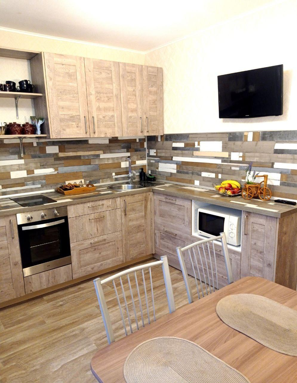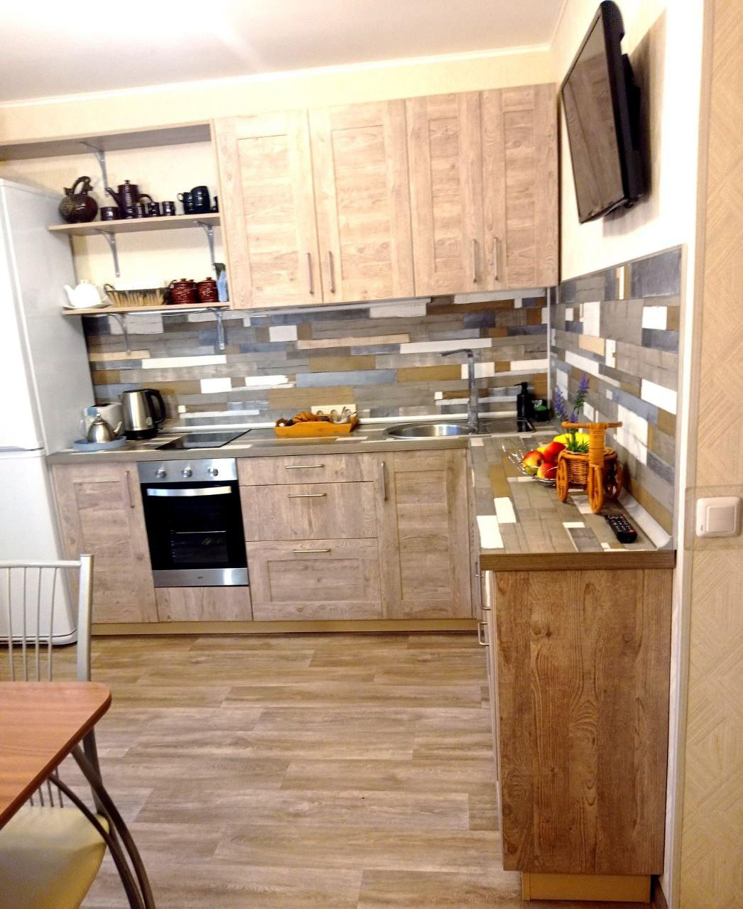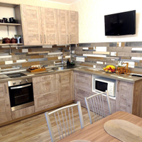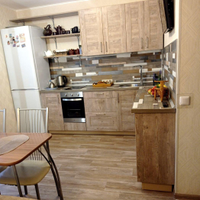 В подарок новому владельцу останется кухонный гарнитур со встроенной техникой (варочная панель, духовка).
