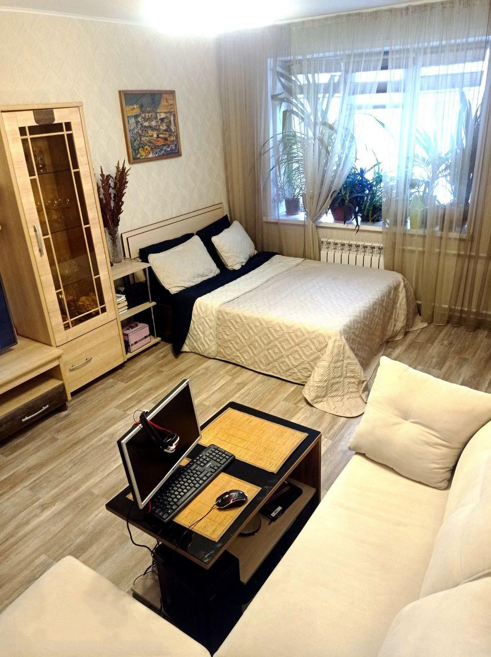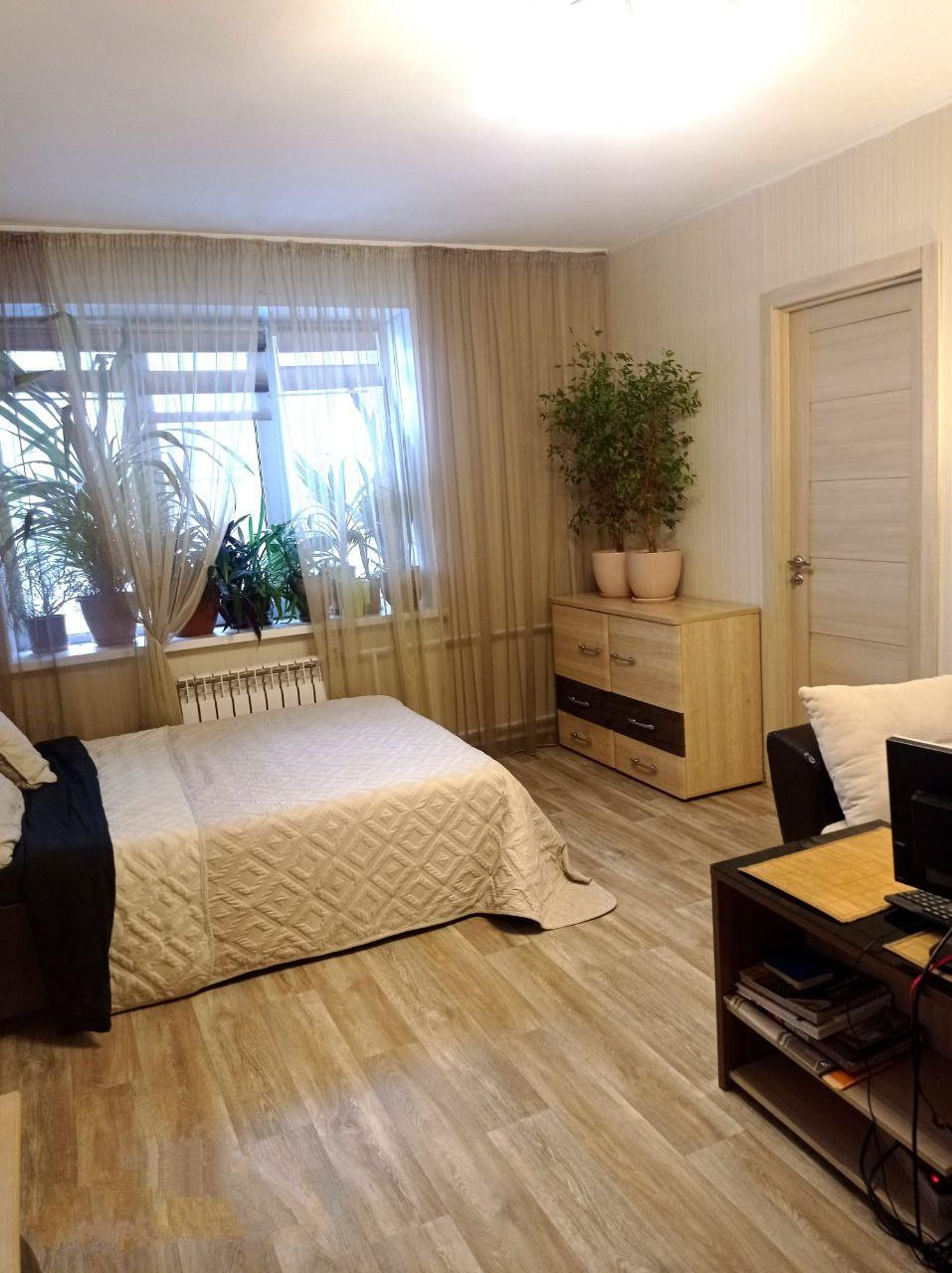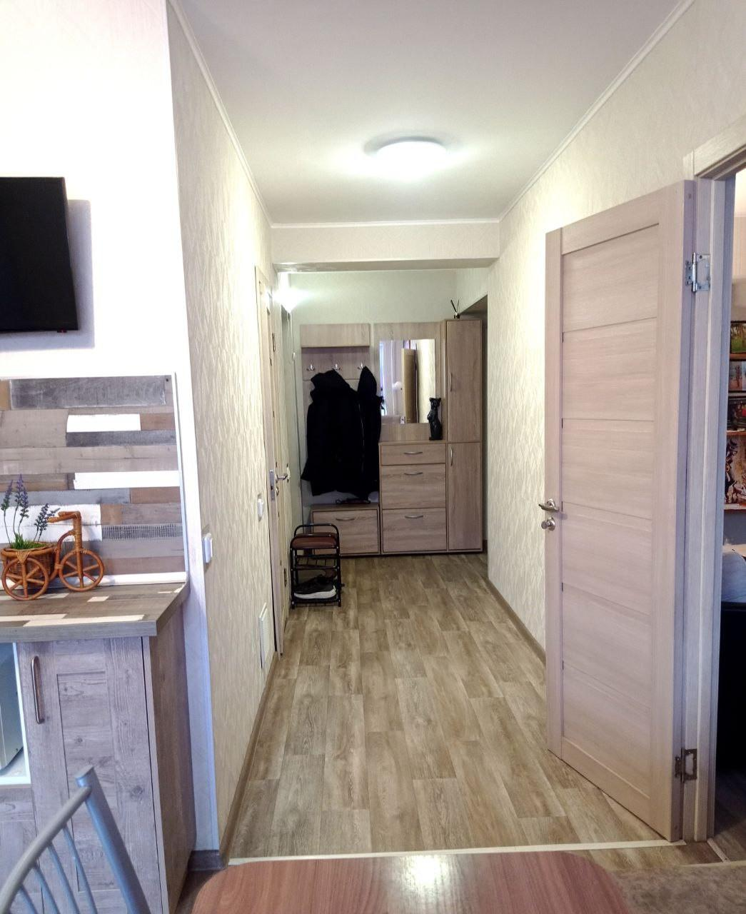 В квартире выполнен капитальный ремонт с использованием качественных материалов. Установлены окна ПВХ, биметаллические радиаторы, пол-линолеум, санузел отделан кафелем, надёжная входная дверь и стильные межкомнатные двери.
