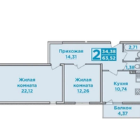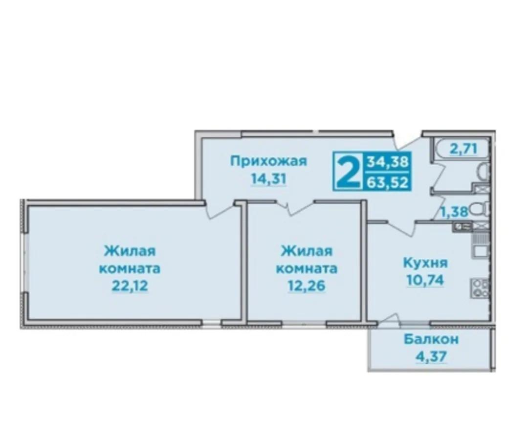 Площадь объекта 63.5м2. Высота потолков 2.7м. Комната 22.1м2. Комната 12.2м2. Кухня 10.7м2.Ремонт косметический. Изолированные комнаты. Раздельные санузлы.