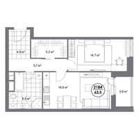 В премиальном квартале "Матч Поинт" представлены двухкомнатные апартаменты общей площадью 63,5 м² на 9 этаже. Уникальное пространство свободной планировки и большое количество окон позволяют реализовать любые интерьерные идеи.