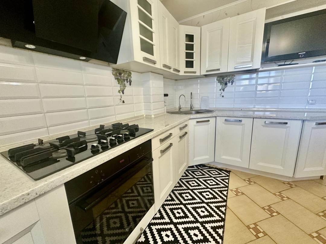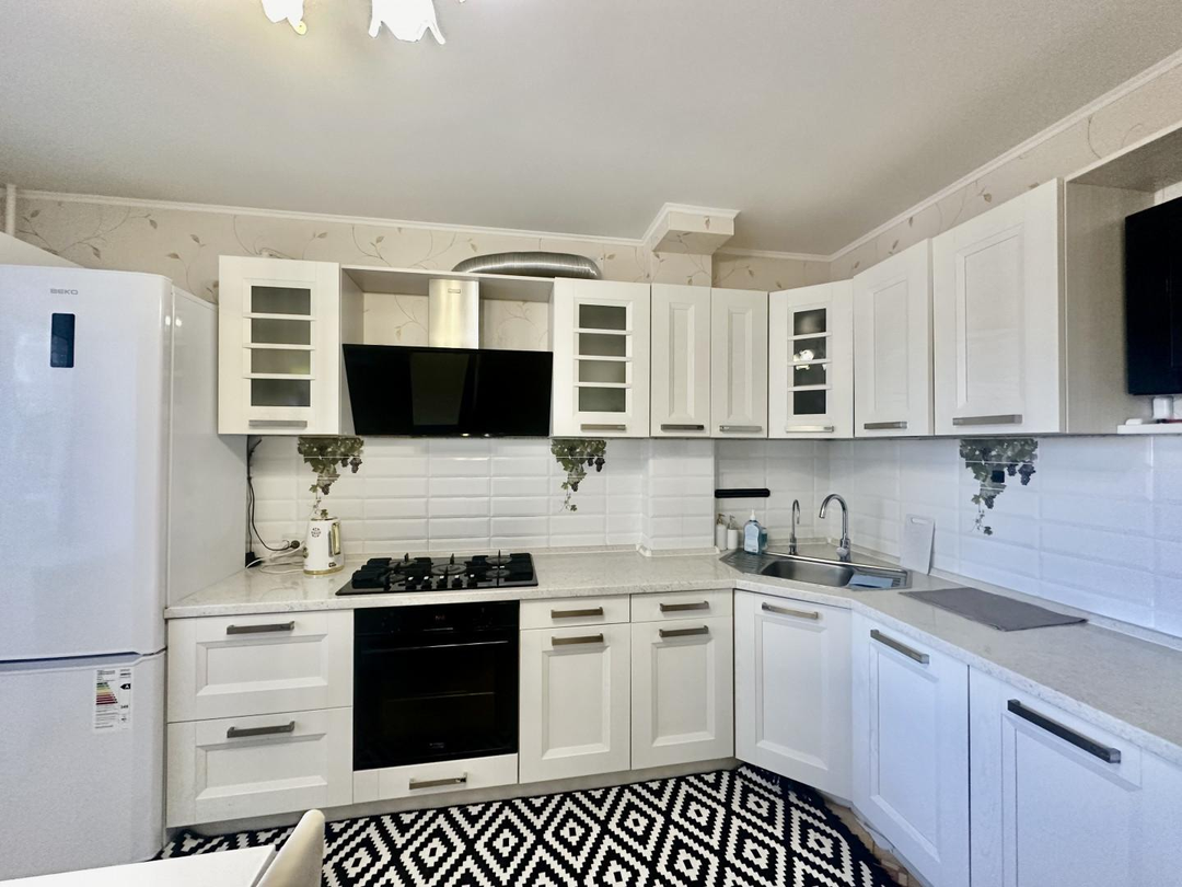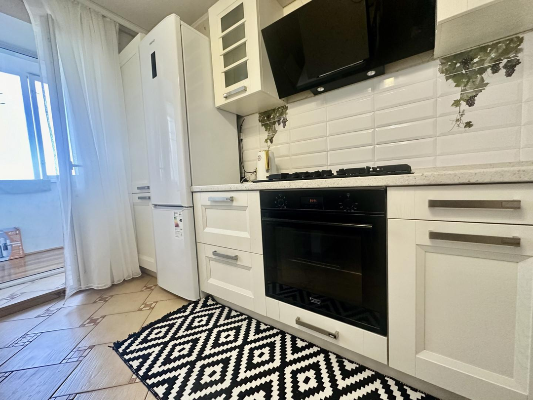 Кухня оснащена всем необходимым и имеет выход на застекленный балкон.