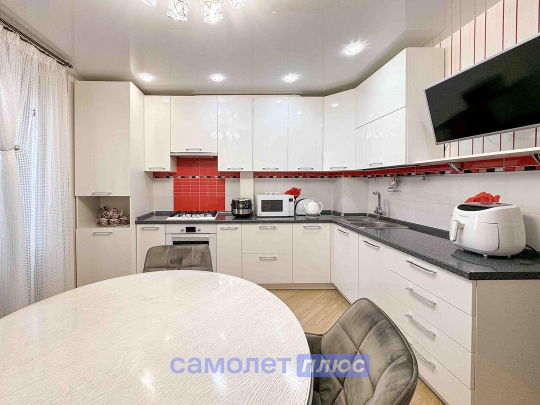 Продается двухкомнатная квартира площадью 68 м², в кирпичном доме с индивидуальным отоплением, с просторной кухней 12,9 м², правильной формы и современным кухонным гарнитуром, выполненным под заказ из качественных материалов.