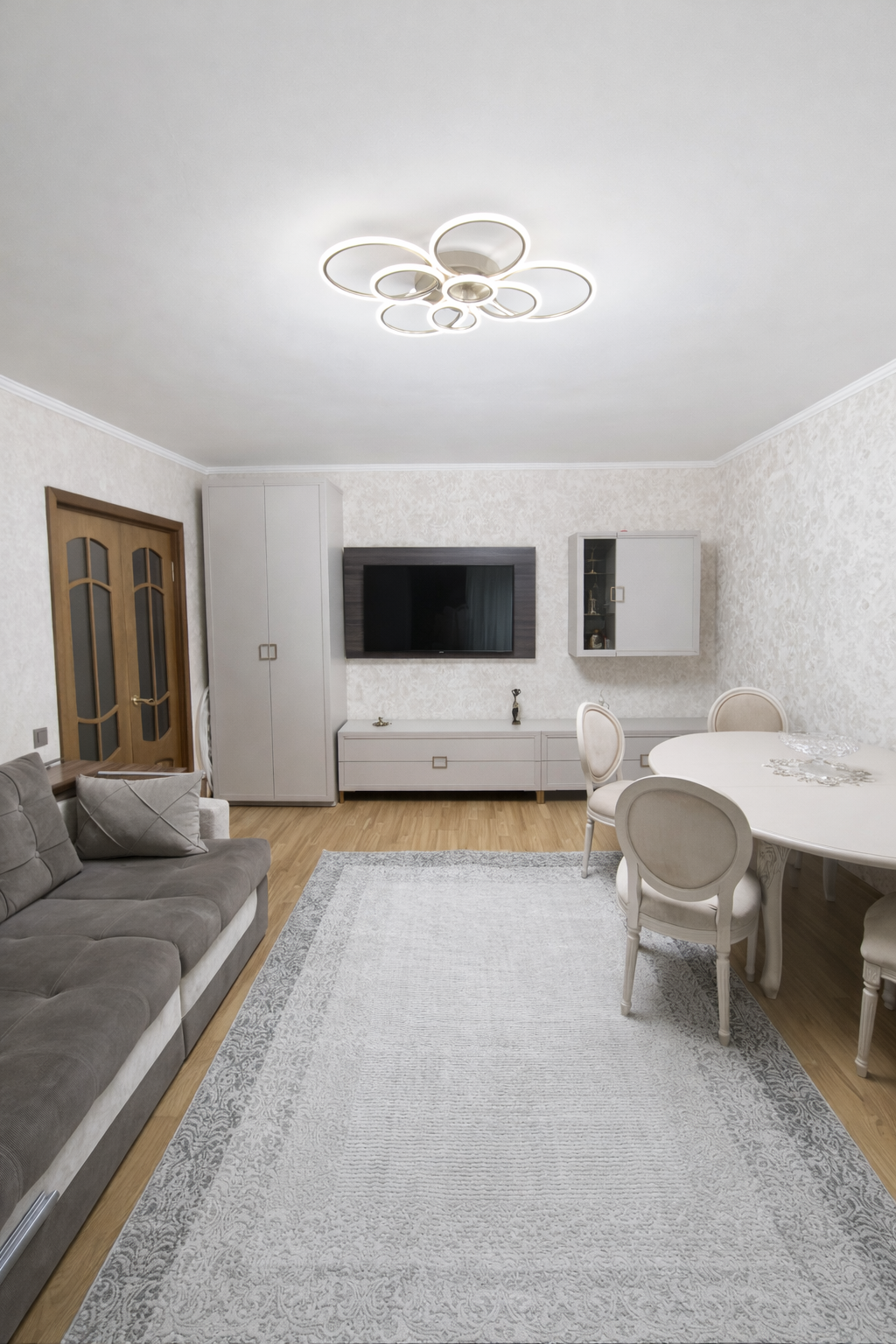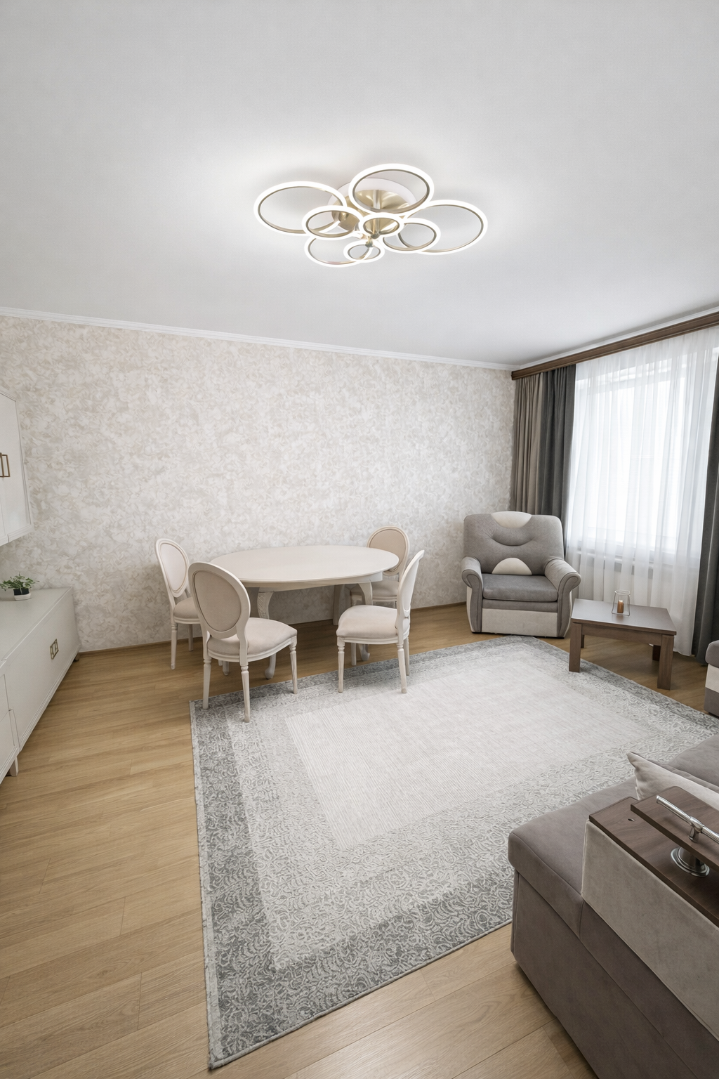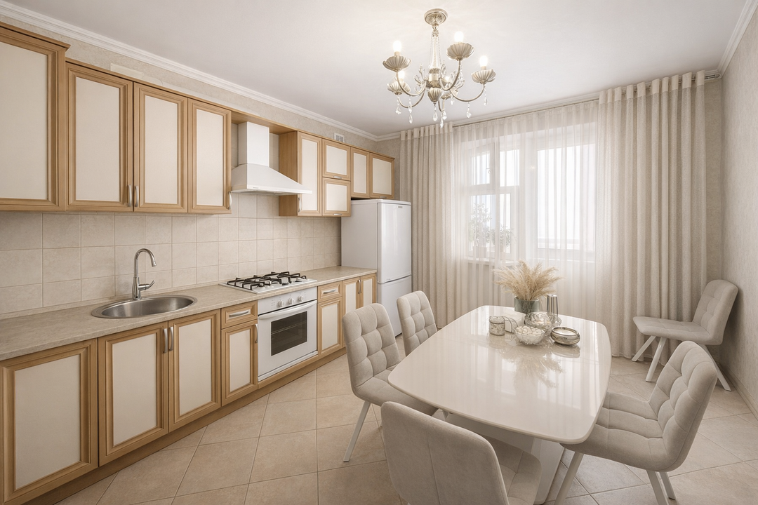 Интерьер квартиры выполнен в современном стиле: ровные потолки, поклеенные обои и ламинат на полу создают уютную и стильную атмосферу. Пластиковые стеклопакеты обеспечивают отличную шумо- и теплоизоляцию. Благодаря индивидуальному отоплению в квартире всегда комфортная температура, даже в сильный мороз.