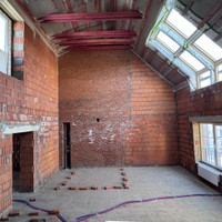 Отсутствие перекрытия между этажами в основной комнате (46,4 м²) создаёт ощущение невероятного объёма, воздуха и свободы, идеальная площадка для дизайнерских решений, например, для установки антресольного этажа с дополнительной площадью. Вариации безграничны!