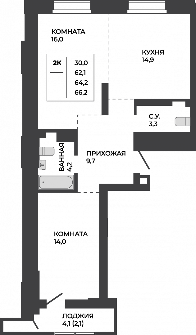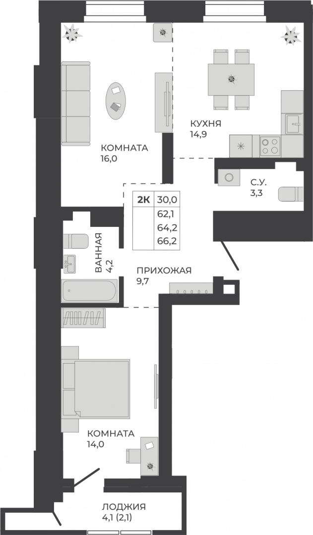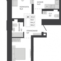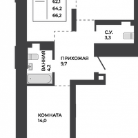 Квартира: 2-комнатная, 64,2 м², на 17 этаже. Сдача — Июнь 2028 г.