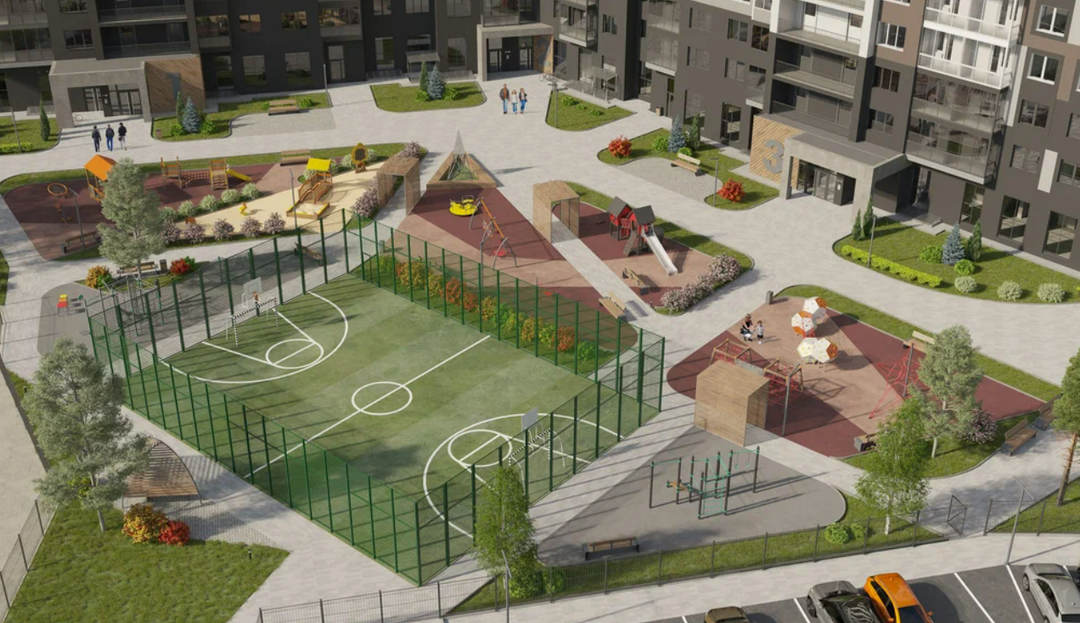 Комплекс располагается в тихом и спокойном районе рядом с удобной транспортной развязкой, а до детских садов и школы с бассейном дети смогут дойти за считанные минуты по безопасному маршруту.