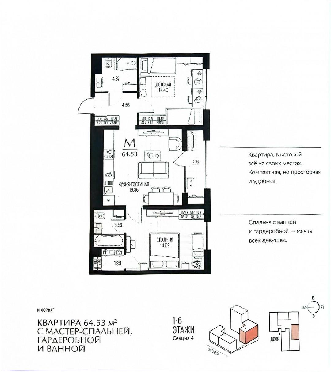 + наличие мастер-спальни - прекрасная возможность для собственников разместиться с повышенным комфортом - есть личная гардеробная и санузел,