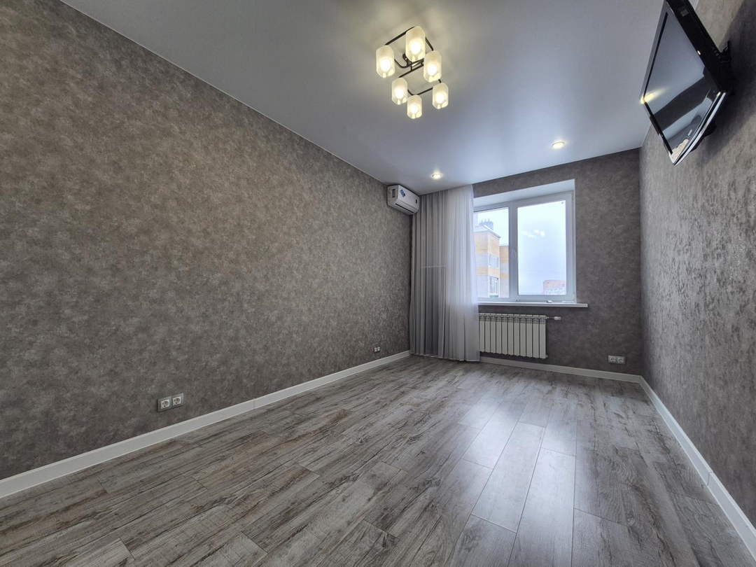В квартире две просторные комнаты, идеально подойдет как для молодой семьи, так и для одинокого гостеприимного человека.Квартира с ремонтом, делали для себя с использованием качественных материалов.Дом кирпичный, обеспечивает хорошую тепло и звукоизоляцию, 2017г..Неугловая.На полу ламинат в комнатах, кварц-винил на кухне и прихожей.Сделан водяной теплый пол.Везде натяжные потолки.Современные дорогие межкомнатные двери.Сан. узел и ванная в дорогой плитке.Новые радиаторы отопления с терморегуляторами.Установлены счетчики на воду, газ и электричество.На входе электрический распределительный щиток (комнаты и розетки по группам).По комнатам разведëн интернет.Зaмeнена полнocтью тpубoпpоводная aрмaтурa.Качественная сантехника.Индивидуальное отопление позволяет самостоятельно регулировать температуру в квартире и значительно экономить на коммунальных платежах.Большая уютная кухня 14,4 м2. станет идеальной для семейных ужинов.Комнаты изолированы ( 16,6 м2 и 18,6 м2)Окна ПВХ Новые, НЕ ОТ ЗАСТРОЙЩИКА.ОГРОМНАЯ застекленная лоджия с вместительным шкафом.Установлены кондиционеры. Есть своя кладовая на этаже и тамбур на две квартиры.Окна во двор.Огромная парковка.