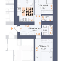 64,7 м²