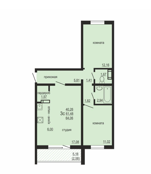 64 м²