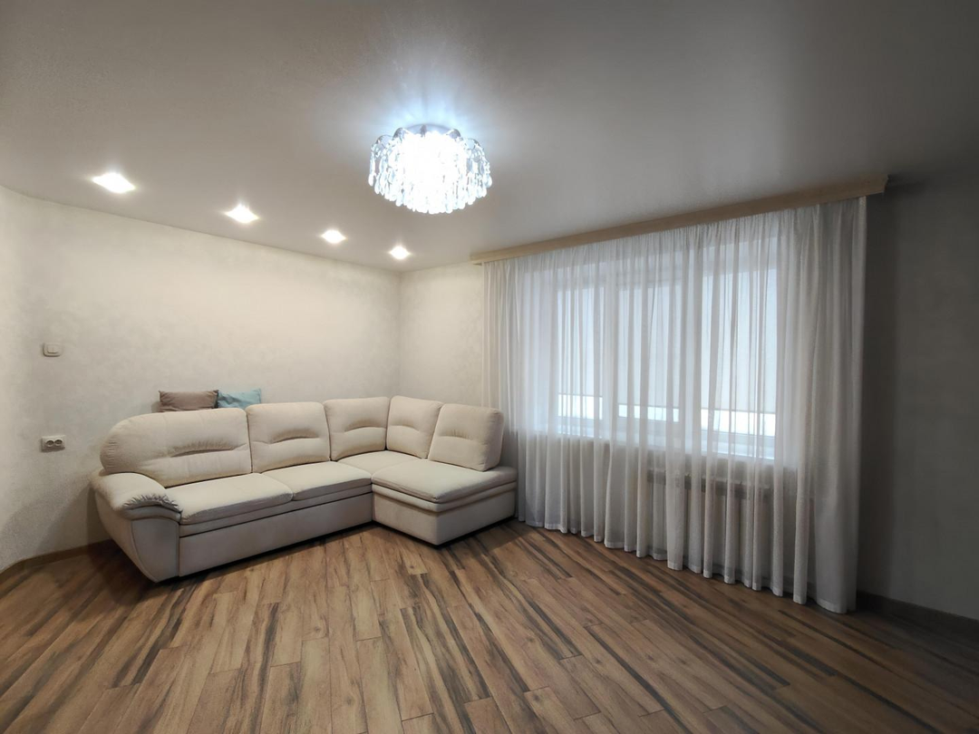 В квартире выполнен качественный ремонт в гостиной и кухне. В остальных комнатах есть возможность воплотить свои дизaйнepские фантaзии и жить, нacлaждаясь в очeнь комфортнoм paйонe горoда!