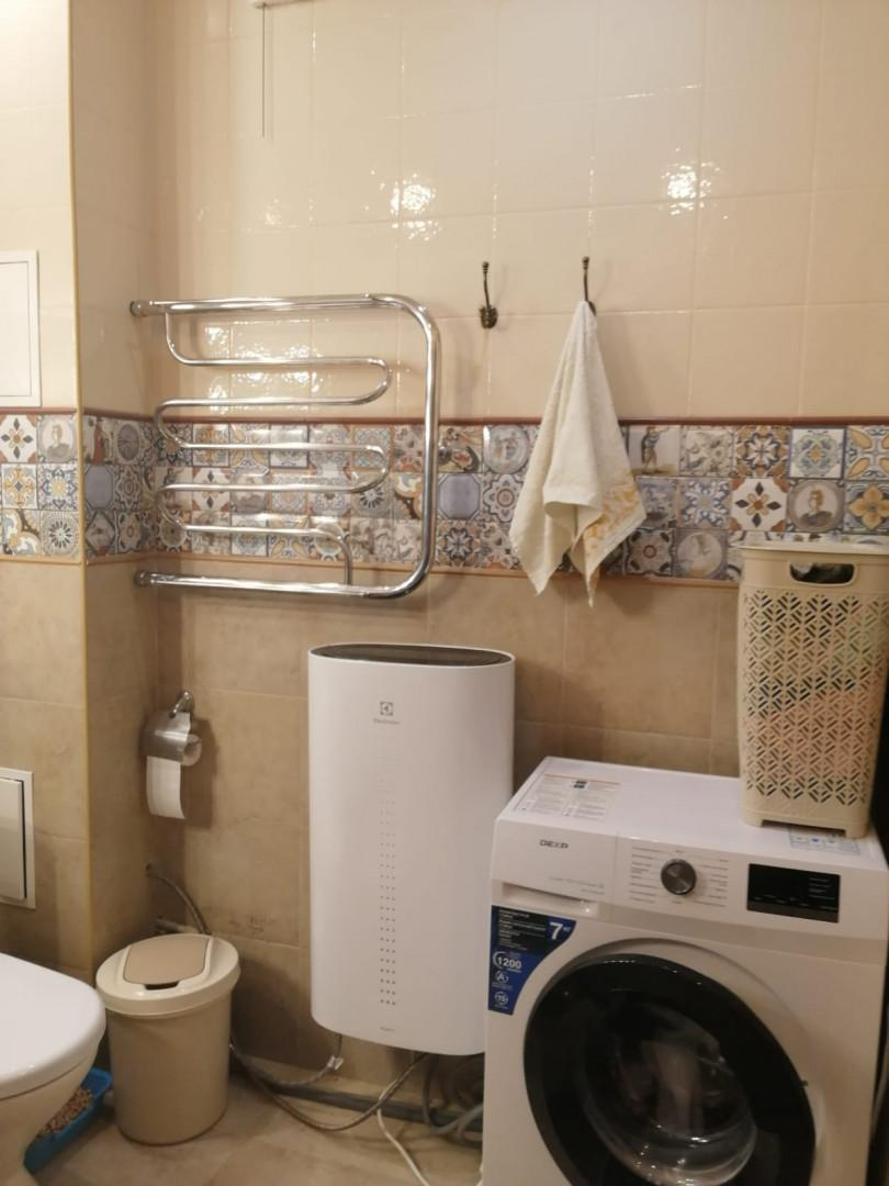 — имеется вся необходимая мебель: кухонный гарнитур, электрическая плита, микроволновая печь, диван, кровать, тумбочка, стол, стиральная машина, прихожая.