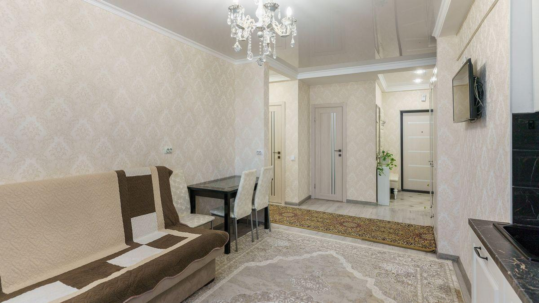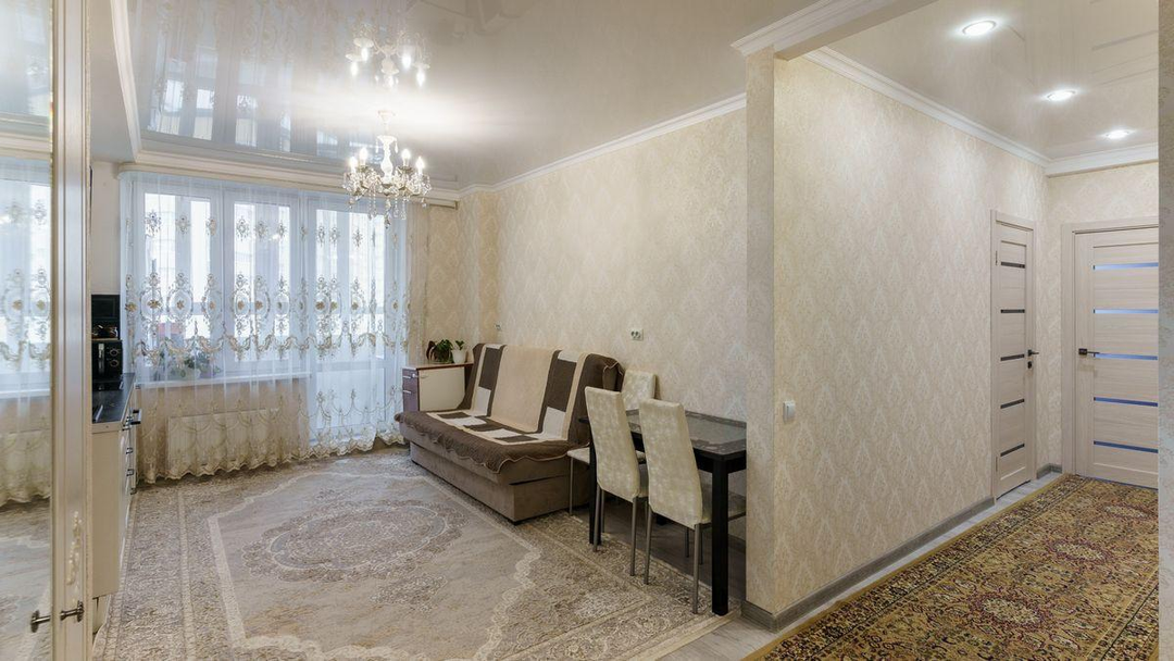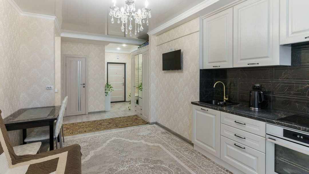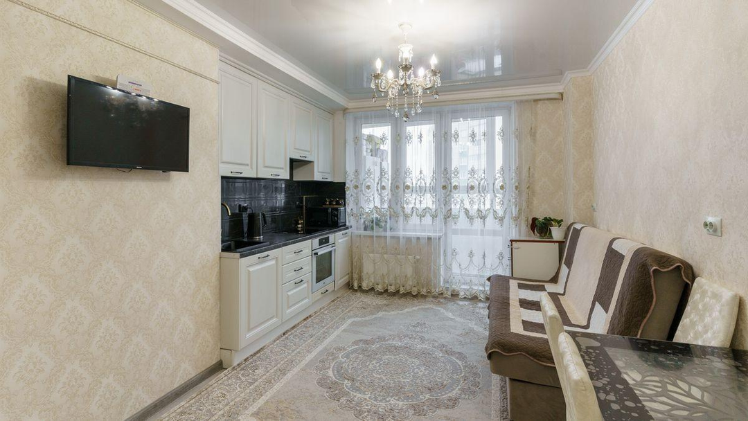 В квартире выполнен косметический ремонт. В стоимость квартиры входит входная и межкомнатные двери, освещение во всех помещениях с осветительными приборами, кухонный гарнитур с раковиной и смесителем, варочная поверхность, вытяжка, телевизор, унитаз, ванна, раковина, тумба под раковиной, исправное сантехническое оборудование.