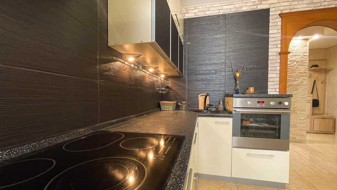 + Хороший ремонт (ровные стены, натяжные потолки, грамотно разведённая электрика, тёплый пол на кухне)