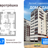 Oтличный формaт "еврoтрeшка" с куxнeй-столовой 23.4 м2 !