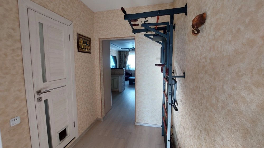 Планировка и интерьер:Кухня‑гостиная (20 м2) — много света и пространства, продуманное зонирование. Установлен качественный кухонный гарнитур со встроенной техникой.Изолированная спальня (16 м2) — идеальное место для отдыха. Из окна открывается приятный вид на зелёную зону и город.Детская комната с рабочей зоной.Кладовая.Совмещённый санузел с современной сантехникой и бойлером — горячая вода есть всегда.Утеплённый балкон переоборудован в кабинет — комфортная рабочая зона с хорошей изоляцией.