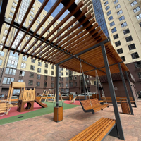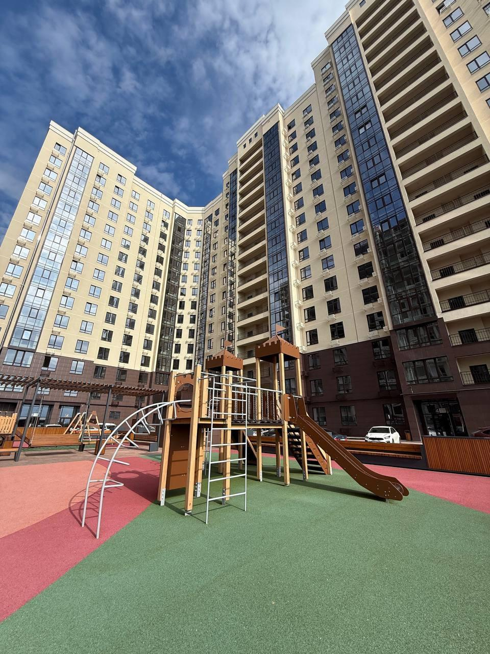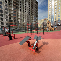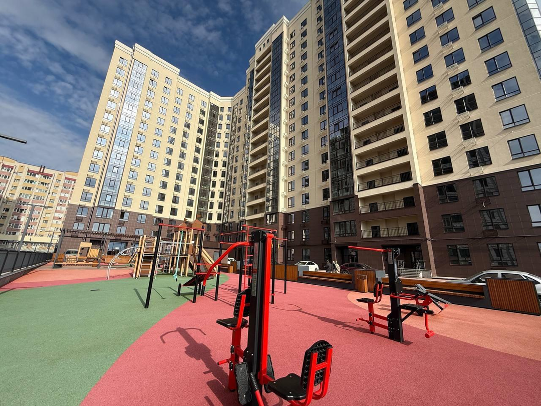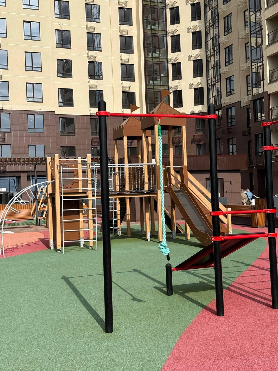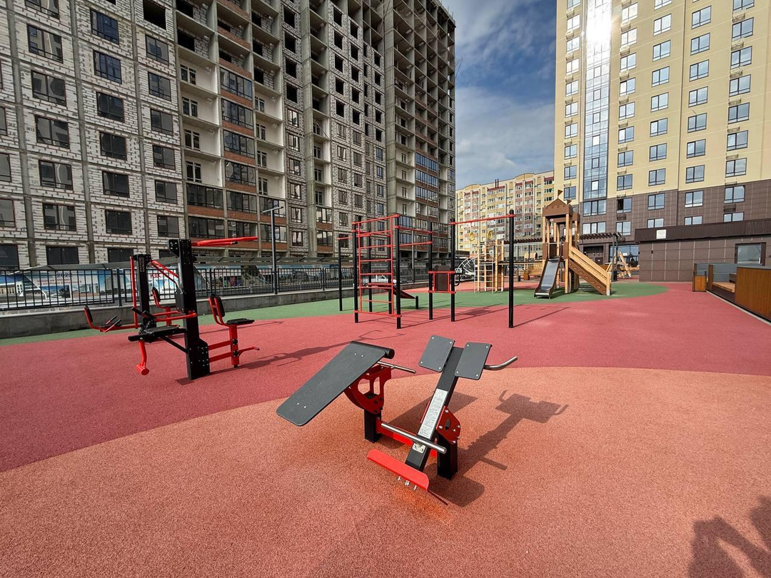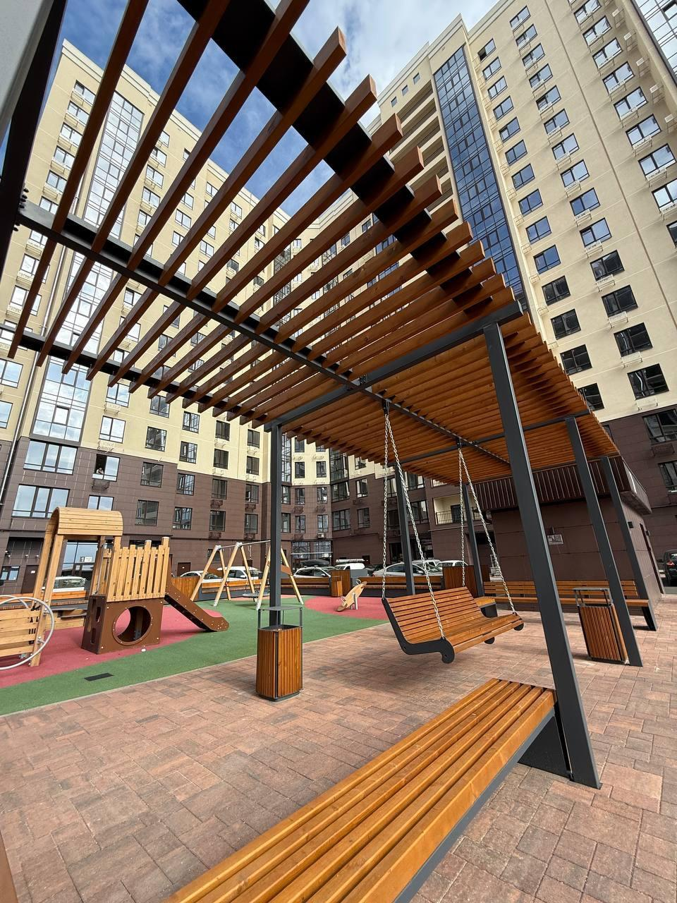 - Закрытый двор с благоустроенной территорией;
