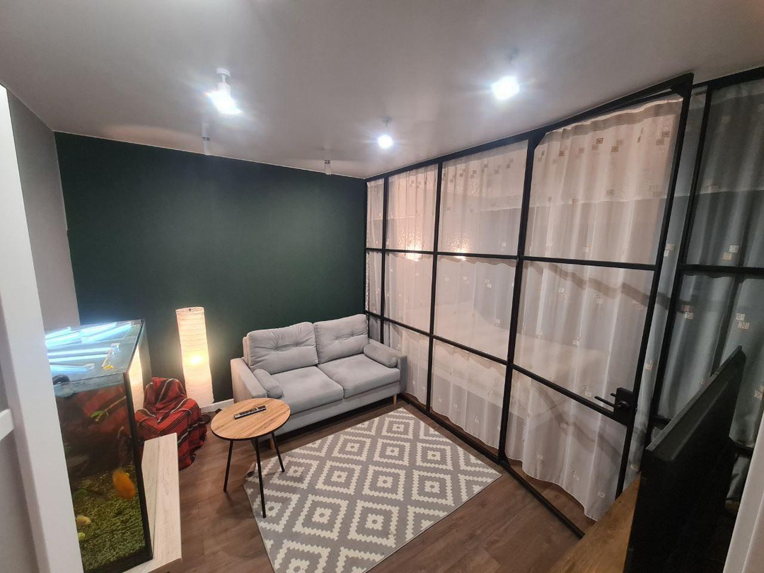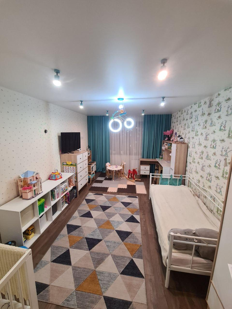 Планировка и зонирование.Детская комната — просторная, светлая, с достаточным местом для игр и учёбы.Гостиная‑спальня — многофункциональное пространство, зонированное на зону отдыха и спальную зону.Прихожая — вместительная, с продуманной системой хранения.Лоджия — утеплённая, с электрическим тёплым полом; может использоваться как зона отдыха или кабинет.