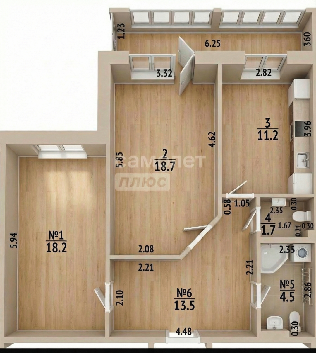 Продается квартира 67.8 кв.м. по адресу: г. Ульяновск, ул. Водопроводная, 7