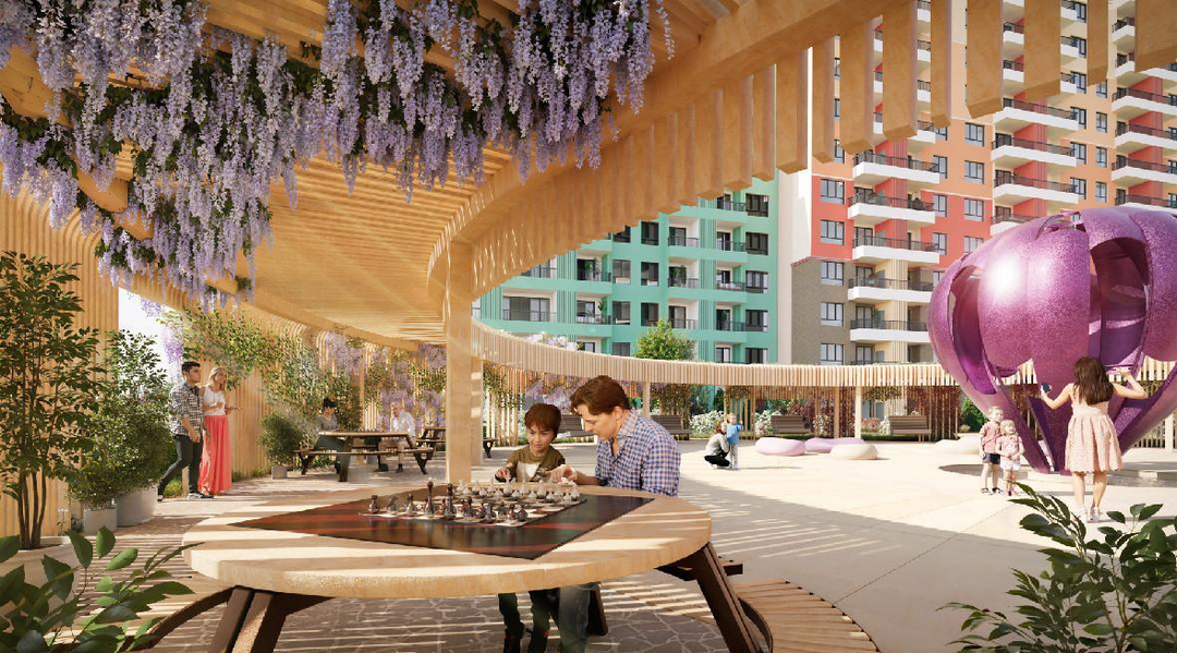 квартиры с различными планировками, предчистовая отделка "White-box"закрытый двор с видеонаблюдениемсобственная котельная, счетчики, скоростной интернет, цифровое телевидениестильное дизайнерское лоббидетские площадки с зонированием по возрастам турнирная на свежем воздухе со столамизеленая зона с гамаками и скамейками-лежакамимангальные зоны с беседками и клумбами из пряных трав, теплицы со свежими овощами и фруктовые деревья во дворе жилого комплексаспортивная площадкабаскетбольное поленастольный теннисоткрытые гостевые парковкипервые этажи отведены под кладовые и коммерческие помещенияобразовательные и медицинские учреждения аптеки и продовольственные магазины скверы и паркинабережная и благоустроенный пляж "Лазурный берег"