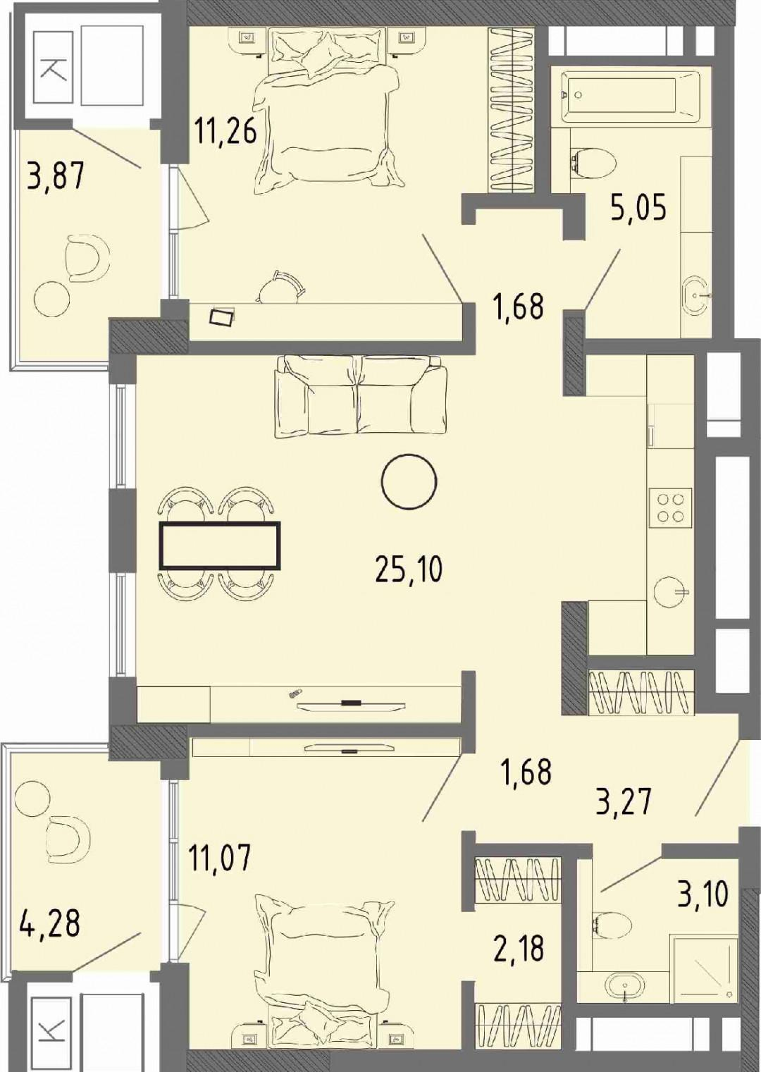 2-комнатная квартира площадью 68,62 кв м на 15-м этаже в живописном ЖК "СОК", г.Евпатория.