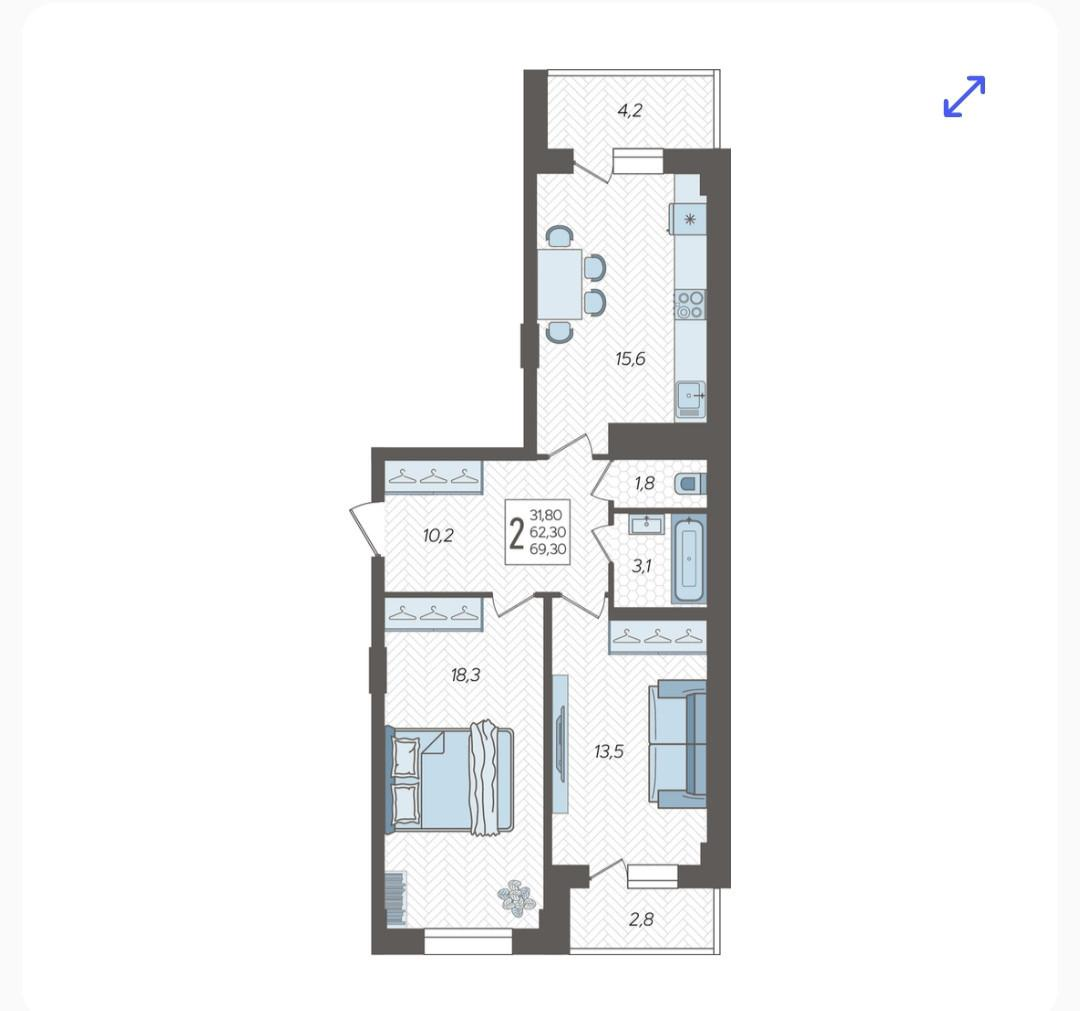 69,3 м²