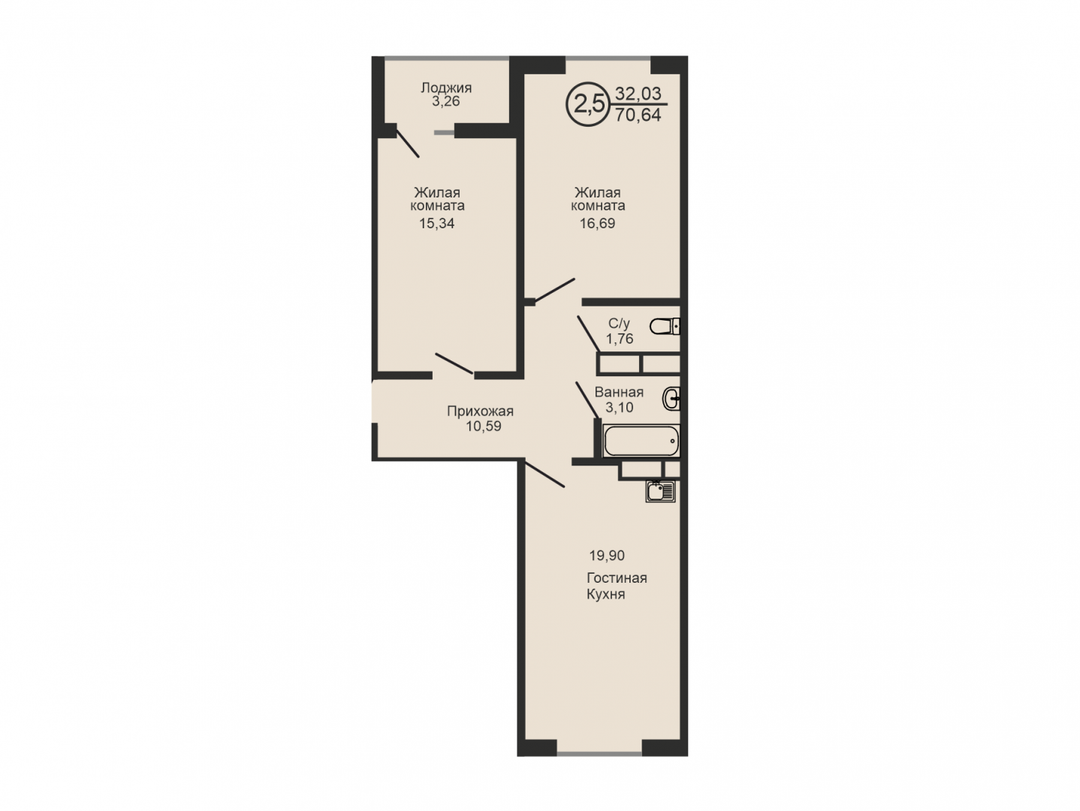 Просторная кухня-гостиная 19,9 м² - идеальное место для встреч с друзьями, ужинов и уютных вечеров.