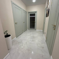 На полу прихожей и кухни керамогранит. В спальне ламинат, устойчивый к влаге.