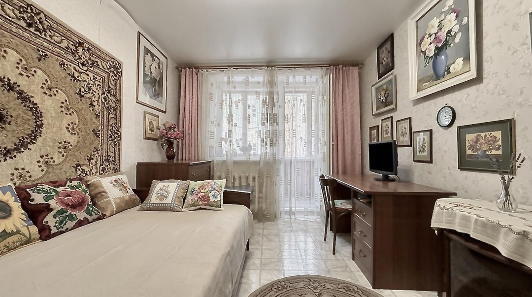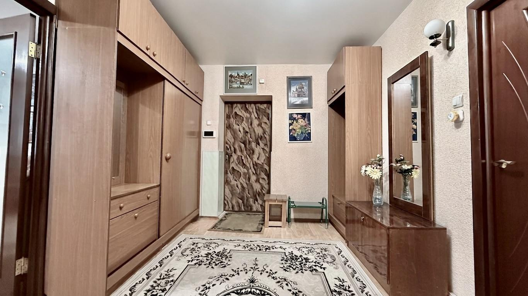 ОПИСАНИЕ: Квартира свeтлaя и уютная с качественным ремонтом. Установлена отличная входная дверь + межкомнатные двери. Пласт.окна во всей квартире + остеклённая лоджия (8,2 м2). Полы стяжка – линолеум. Сан.узел в кафеле современного образца. Натяжные потолки. Стены выровнены поклеены обоями. Индивидуальное отопление - вследствие, чего очень низкие коммунальные платежи