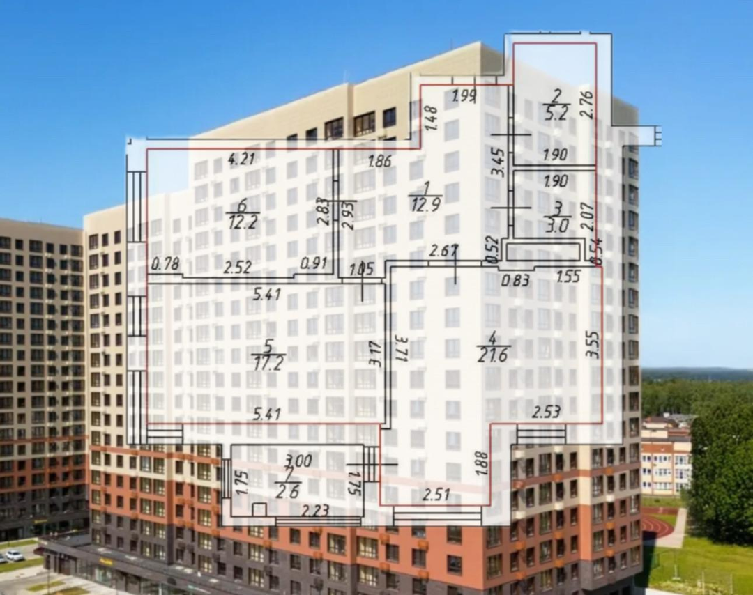 •комната - 17,2 кв.м.