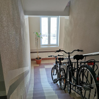 В доме чистые подъезды, тихий лифт с видеокамерой. В квартире видеодомофон.