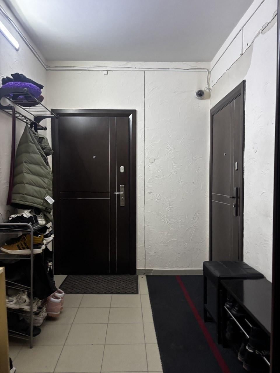 При входе в квартиру имеется тамбур на две квартиры, оборудованный зоной с местом хранения обуви.