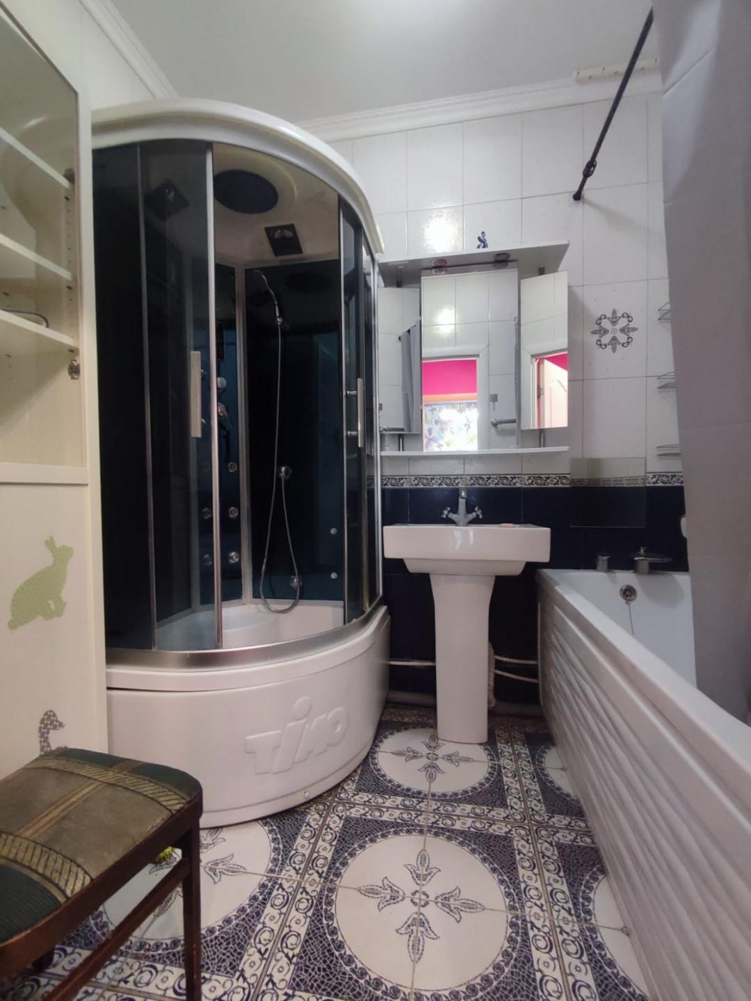 Квартира характеризуется грамотно спроектированной планировкой, в которой предусмотрены две изолированные спальни, кухня-гостиная, кладовая площадью 3,5 кв. м, гардеробная 4 кв. м, просторная ванная комната с душевой кабиной, раковиной, шкафом и ванной длиной 190 см, а также санузел с отдельной раковиной и местом для стиральной машины. Утепленный балкон площадью 6 кв. м был обустроен под кабинет.