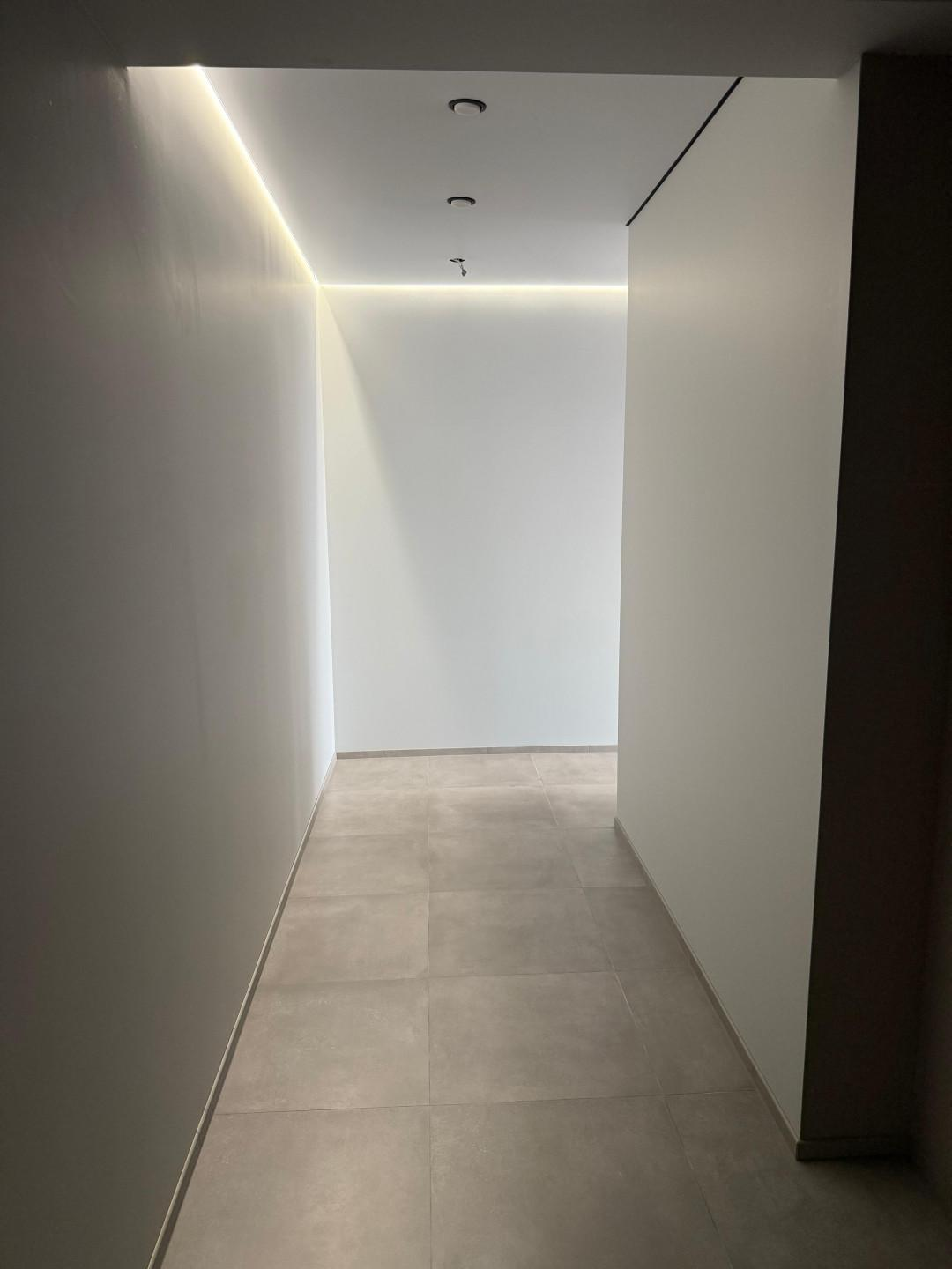 – Эффектное Освещение: В коридоре и на кухне реализован теневой профиль (эффект "парящего потолка") для создания стильной и уютной атмосферы.