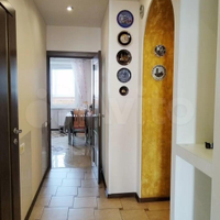 Новым владельцам в дар останется высококачественный кухонный гарнитур, оборудованный варочной панелью, вытяжкой и духовым шкафом, а также стильная встроенная мебель в прихожей.
