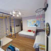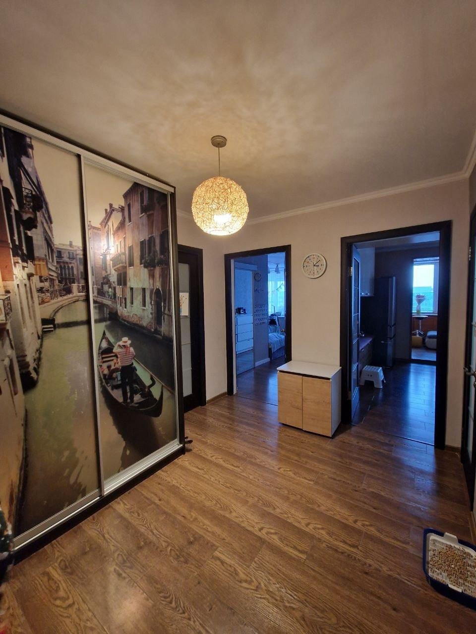 2 просторные, изолированные комнаты общей площадью - 76,9 кв.м.. с очень хорошей планировкой на две стороны. С хорошим ремонтом. В квартире в одной из спален есть большая гардеробная. Площадь комнат 26,6 кв.м. и 23.7 кв.м. Большая кухня площадью 11.7 кв.м. с кухонным гарнитуром и техникой. Красивые виды из окон. Очень светлая квартира. 2 квартиры на площадке.