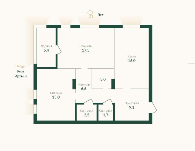 2-хкомнатную квартиру в престижном жилом комплексе «Экопарк» с шикарным видом на реку Иртыш!