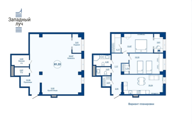 Этаж: 11. Площадь квартиры: 81.33. Количество комнат: 2. Квартира: 406